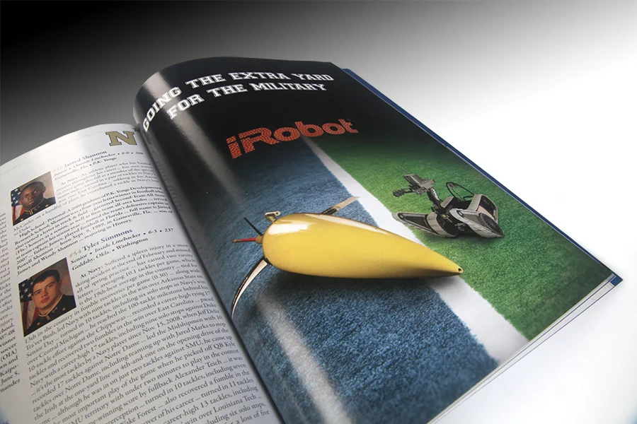 This iRobot ad was created for the 2010 Army/Navy Game Program Guide. The goal of the ad was to give more visibility to the iRobot Brand in the sports market.